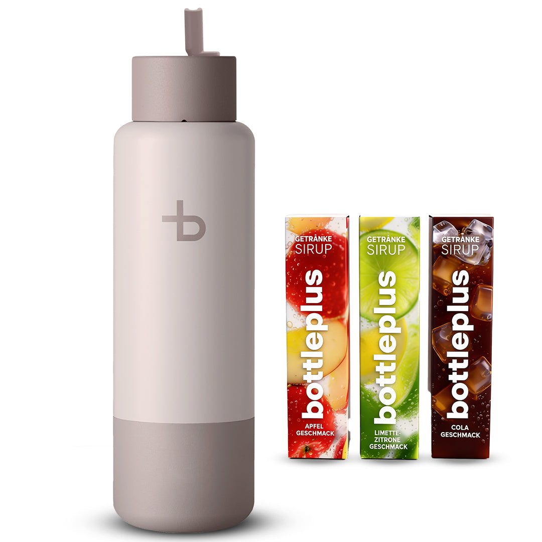 Die Geschmackslösung ist unsere Neuentwicklung für deine bottleplus Flaschen. Sie besteht aus einem Geschmacks-Deckel und Geschmacks-Kapseln (kleine, austauschbare Sirup-Kapseln). So kannst du dein Wasser Schluck für Schluck veredeln – ohne Kleckern, ohne zusätzliches Mischen.