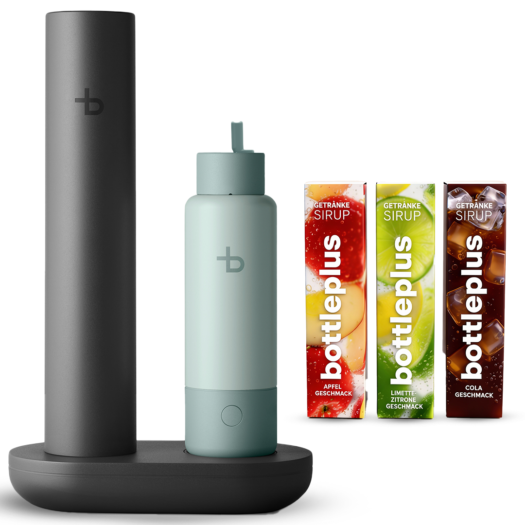 Die Geschmackslösung ist unsere Neuentwicklung für deine bottleplus Flaschen. Sie besteht aus einem Geschmacks-Deckel und Geschmacks-Kapseln (kleine, austauschbare Sirup-Kapseln). So kannst du dein Wasser Schluck für Schluck veredeln – ohne Kleckern, ohne zusätzliches Mischen.